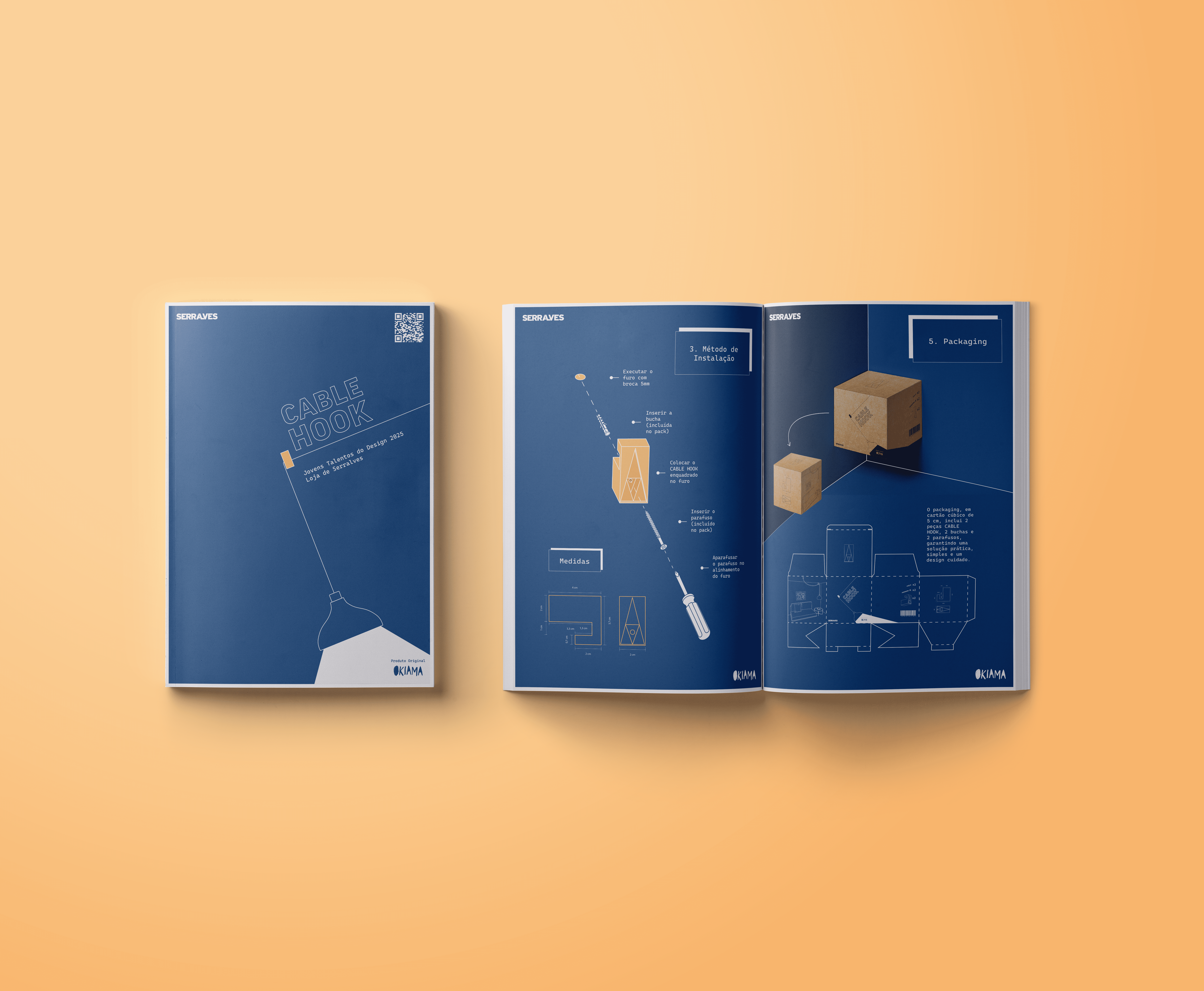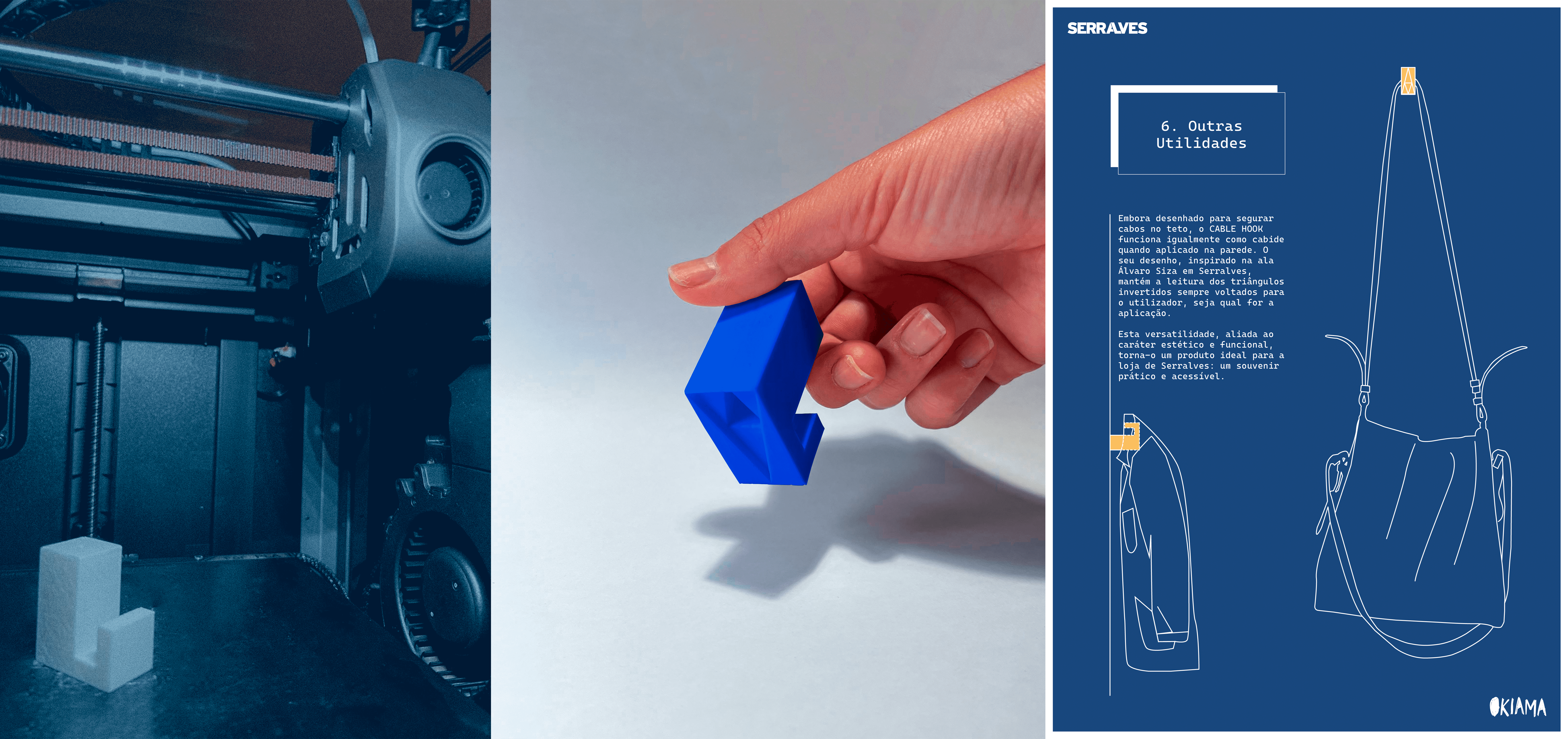 A peça final assume-se como um cabide e organizador de cabos, cruzando design, utilidade e identidade arquitetónica