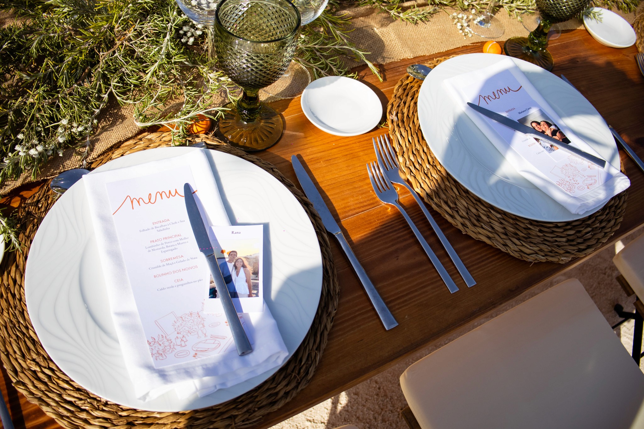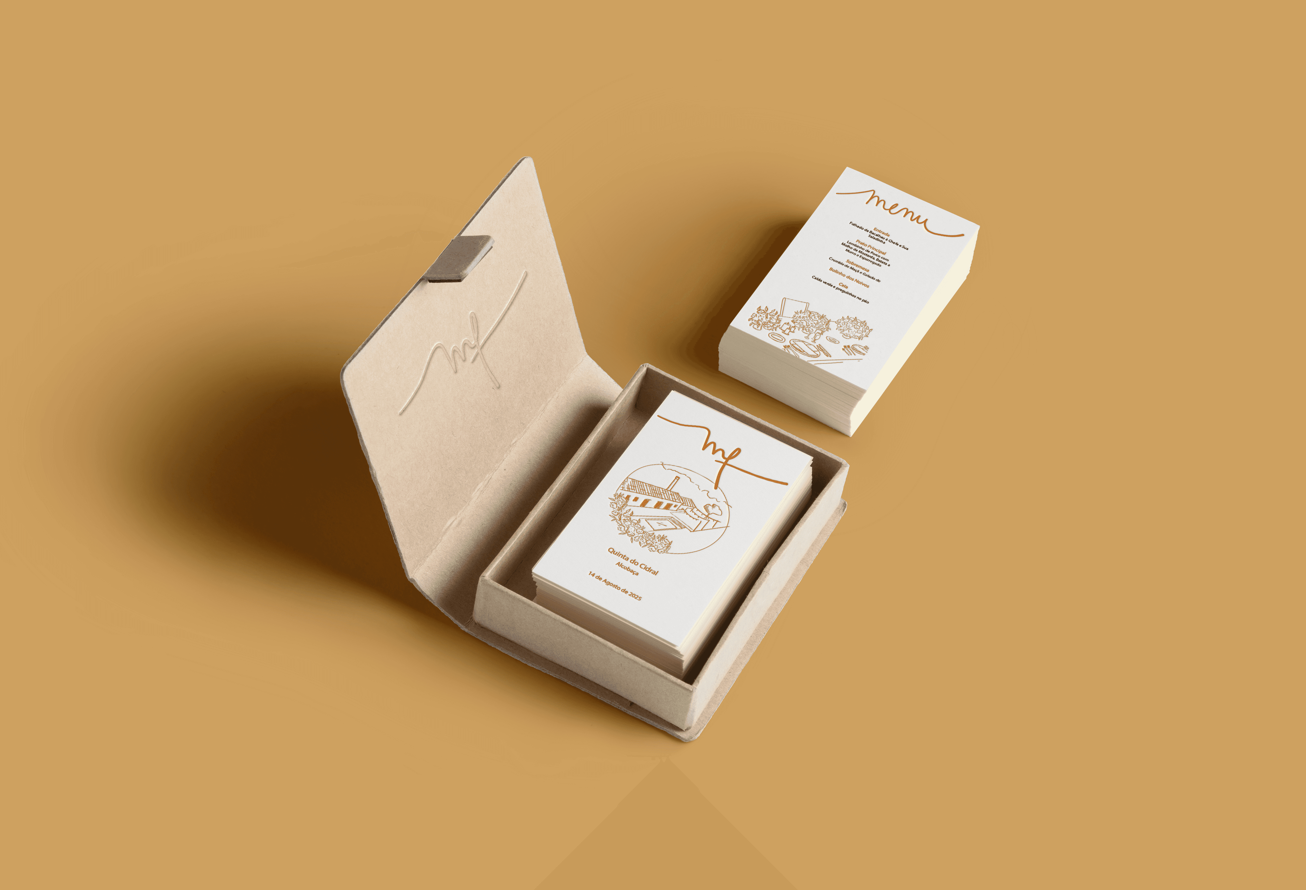 Criar um menu que fosse mais do que informativo, integrando-se na estética e narrativa do casamento.