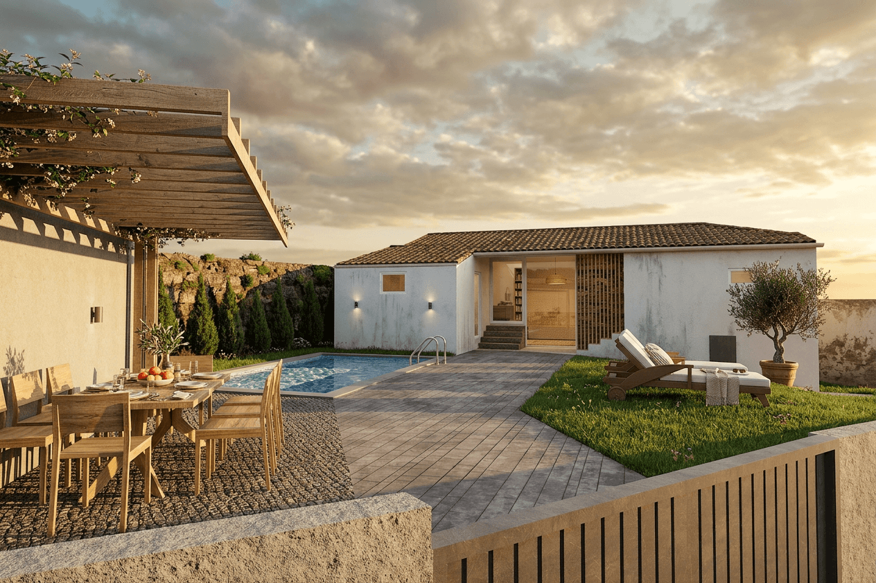 O projeto estrutura e qualifica uma casa de férias, alinhando legalização, funcionalidade e continuidade construtiva.